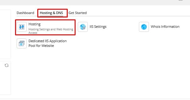 Domain’in “Dashboard” sayfasına gideceğiz. “Hosting & DNS” tabına tıklayacağız.