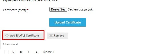Add SSL/TLS Certificates butonuna tıklıyoruz